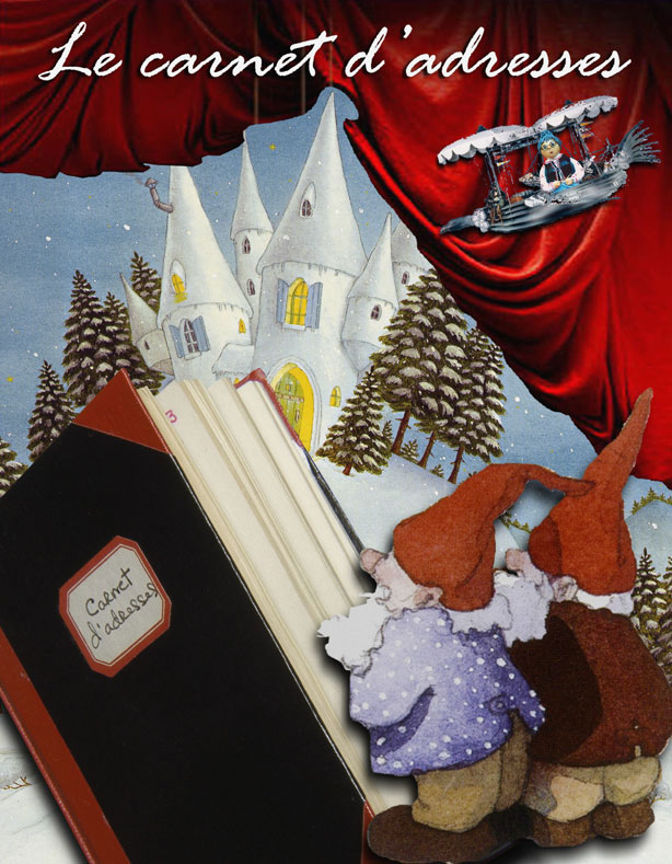 Tout à coup, on entend : « Parbleu de vingueu! Mon carnet d’adresses! Je n’ai plus mon carnet d’adresses. » Tout le monde aide le Père Noël à chercher son carnet, sans lequel il ne pourra distribuer les cadeaux  aux enfants de la Terre.  Mais c’est peine perdue et il se fait tard. Le Père Noël s’envole dans les airs sans son carnet d’adresses : il lui faudra utiliser  sa mémoire s’il veut réussir sa tournée.